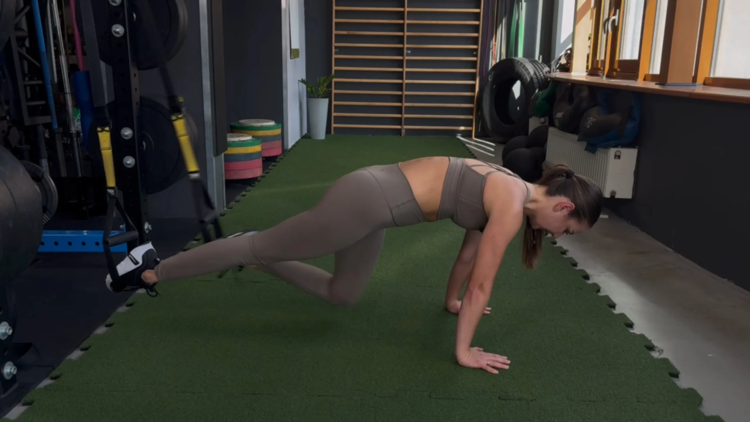 Mountain climbers z nogami na TRX