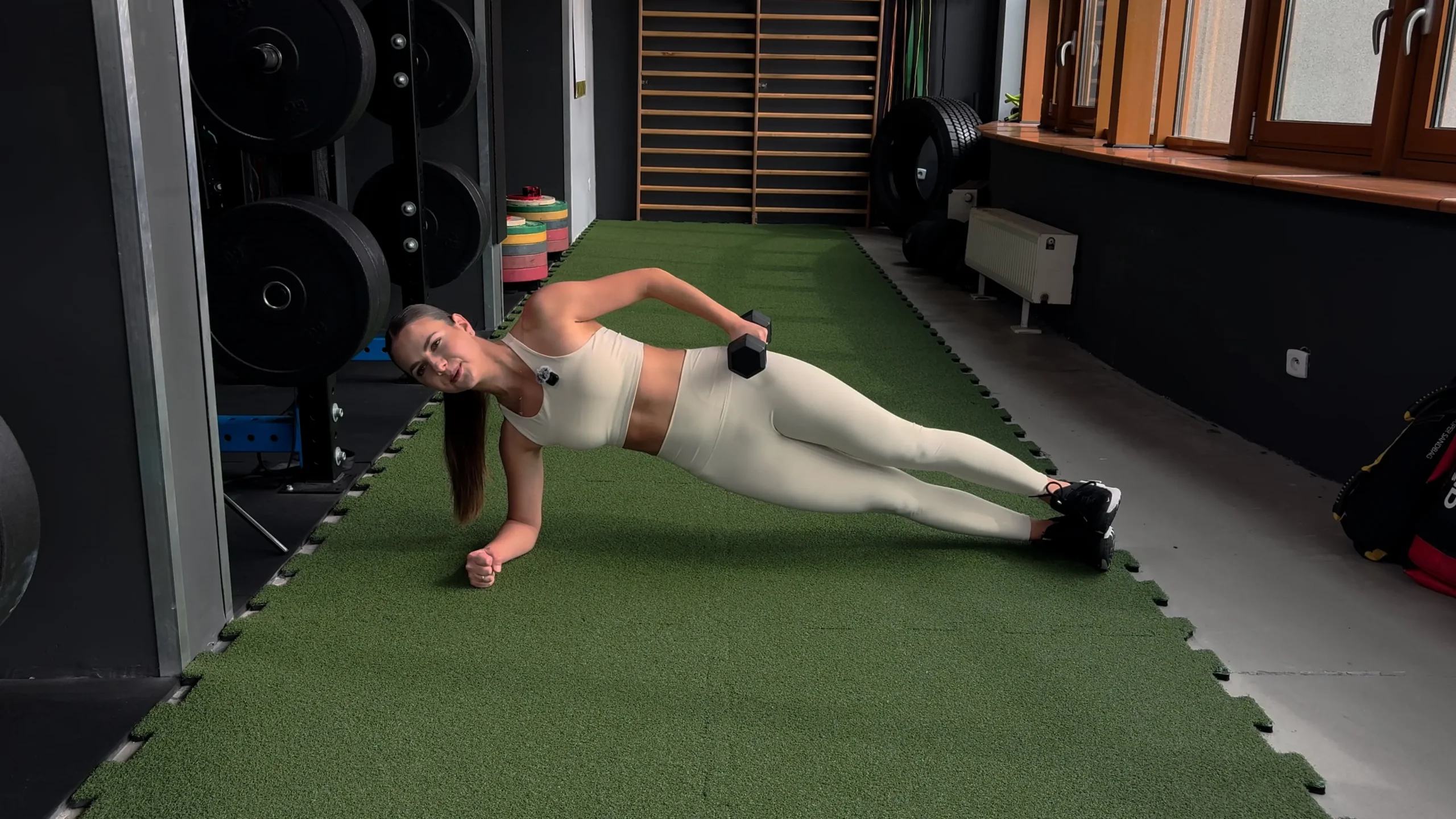 Naprzemienne wyciskanie hantli na ławce poziomej