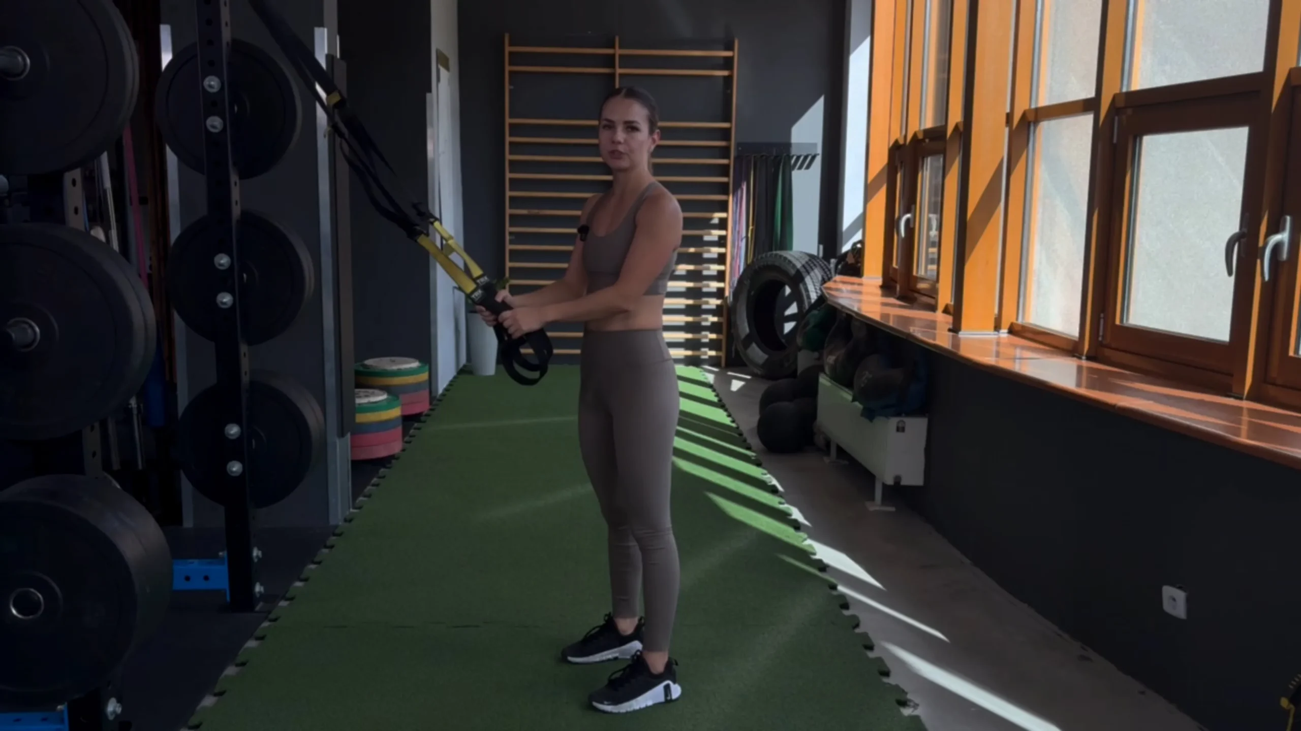 Przysiady ze sztangą z przodu z talerzami pod piętami