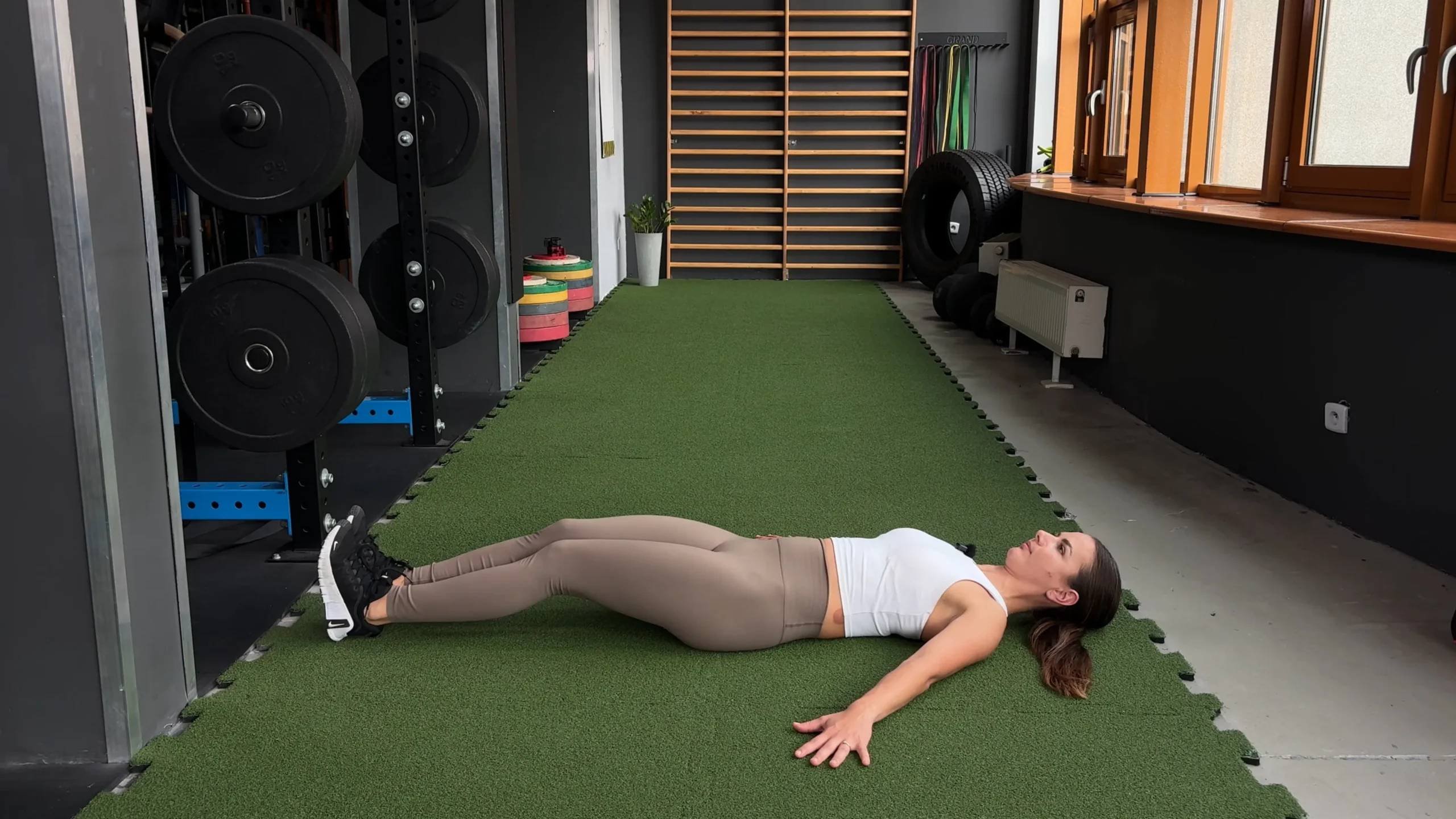 Unoszenie nóg w leżeniu tyłem
