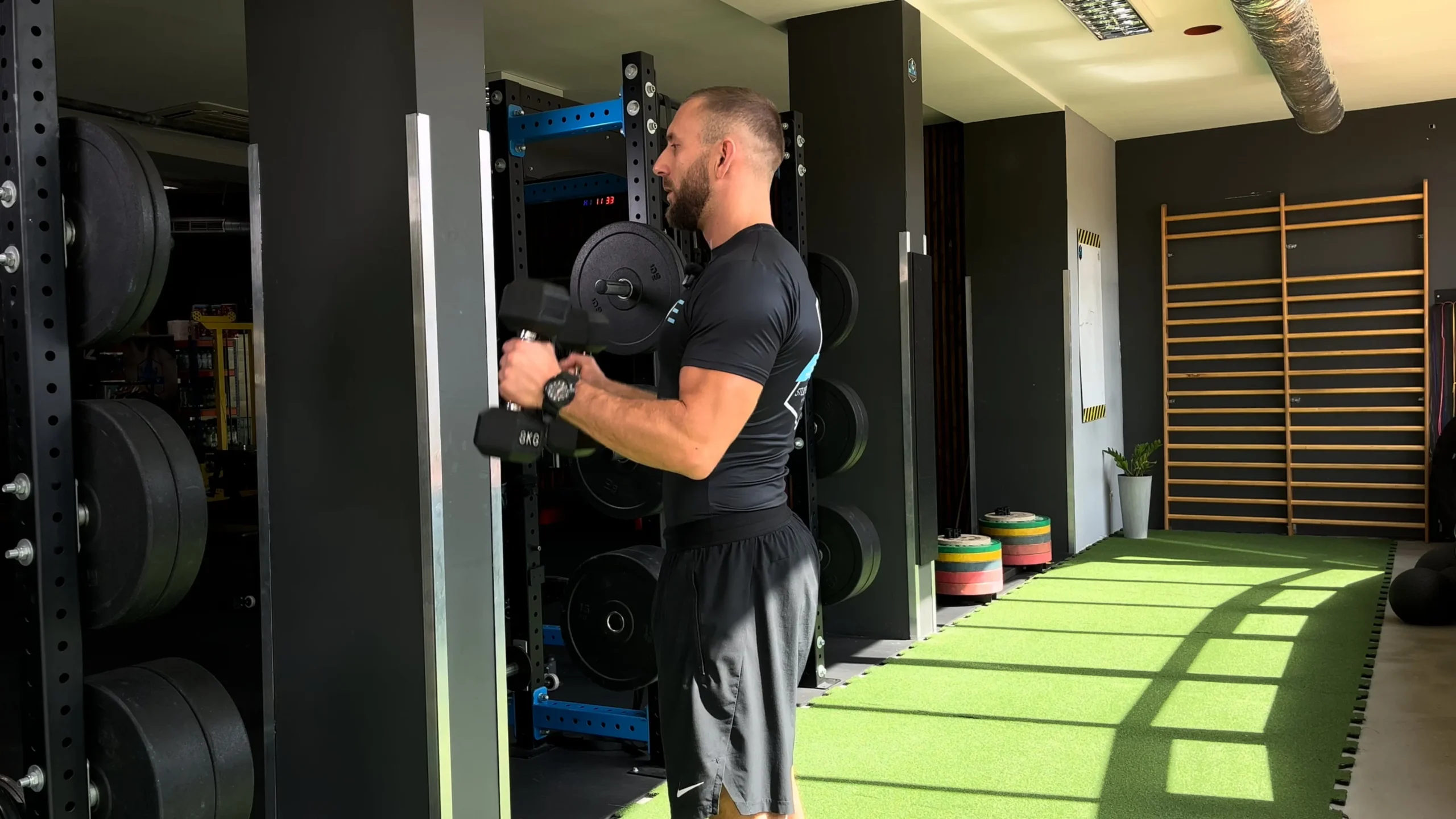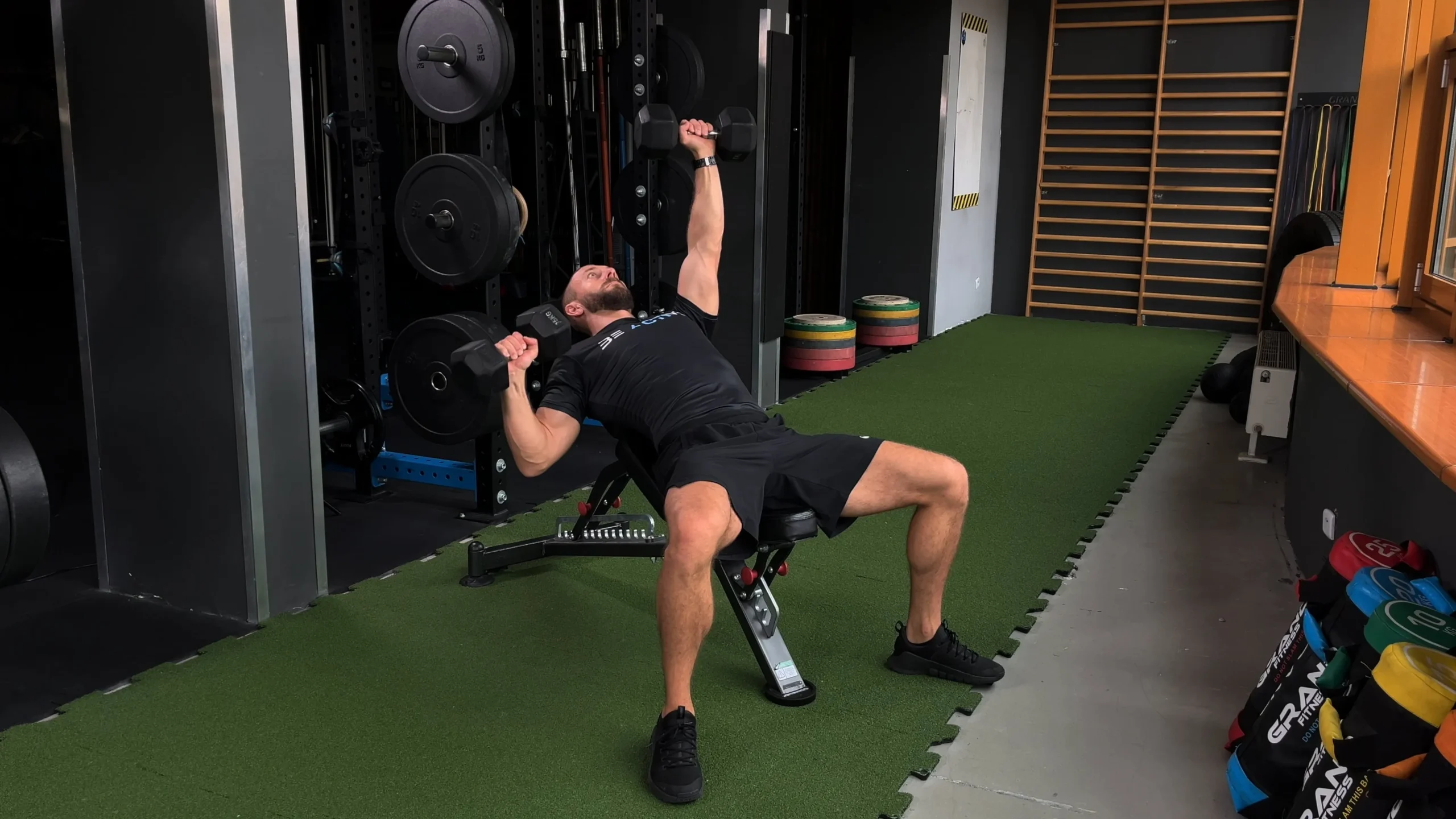 Naprzemienne wyciskanie hantli na ławce skośnej