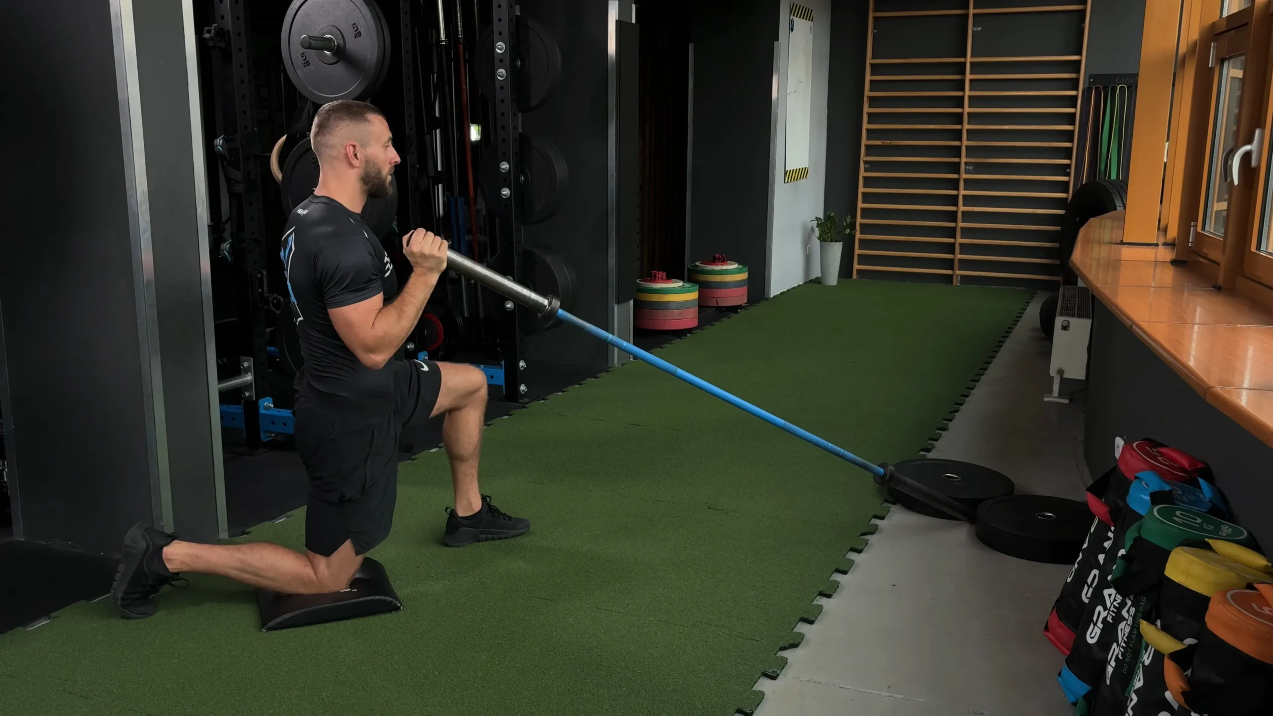 Wyciskanie półsztangi jednorącz w klęku jednonóż