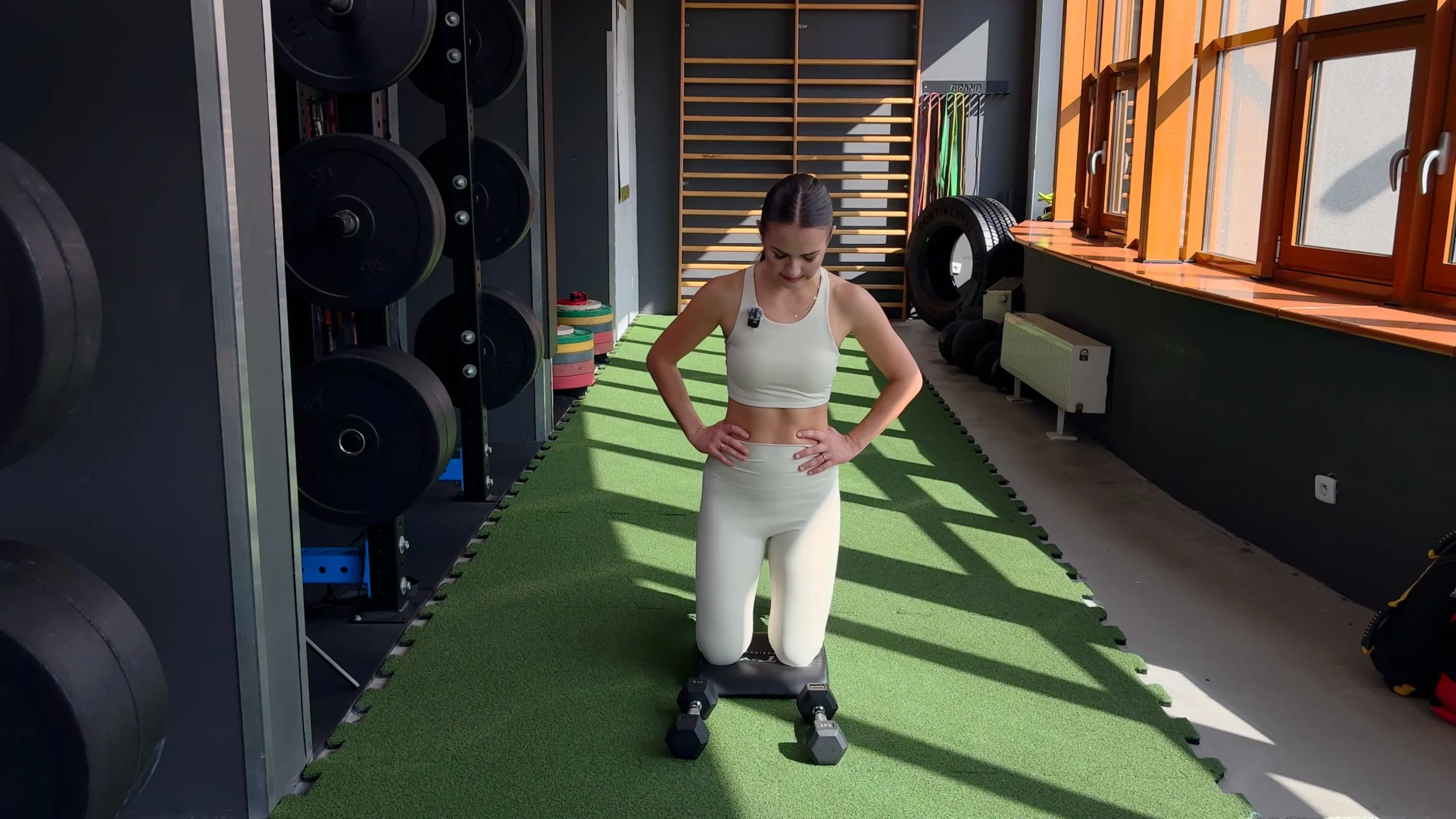 Wyciskanie hantli w leżeniu na ziemi