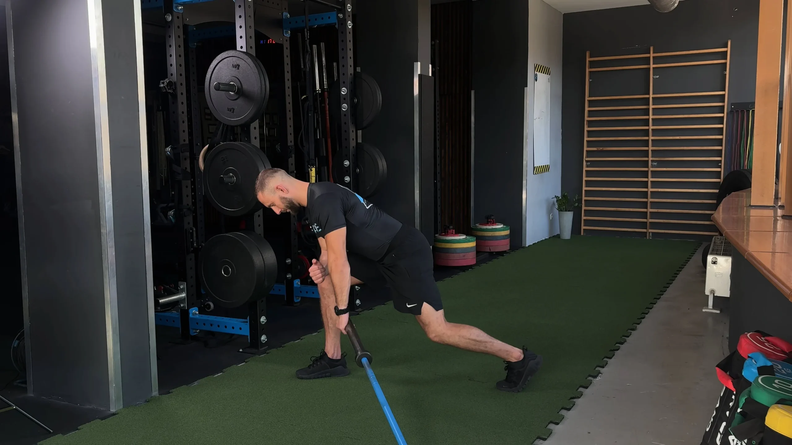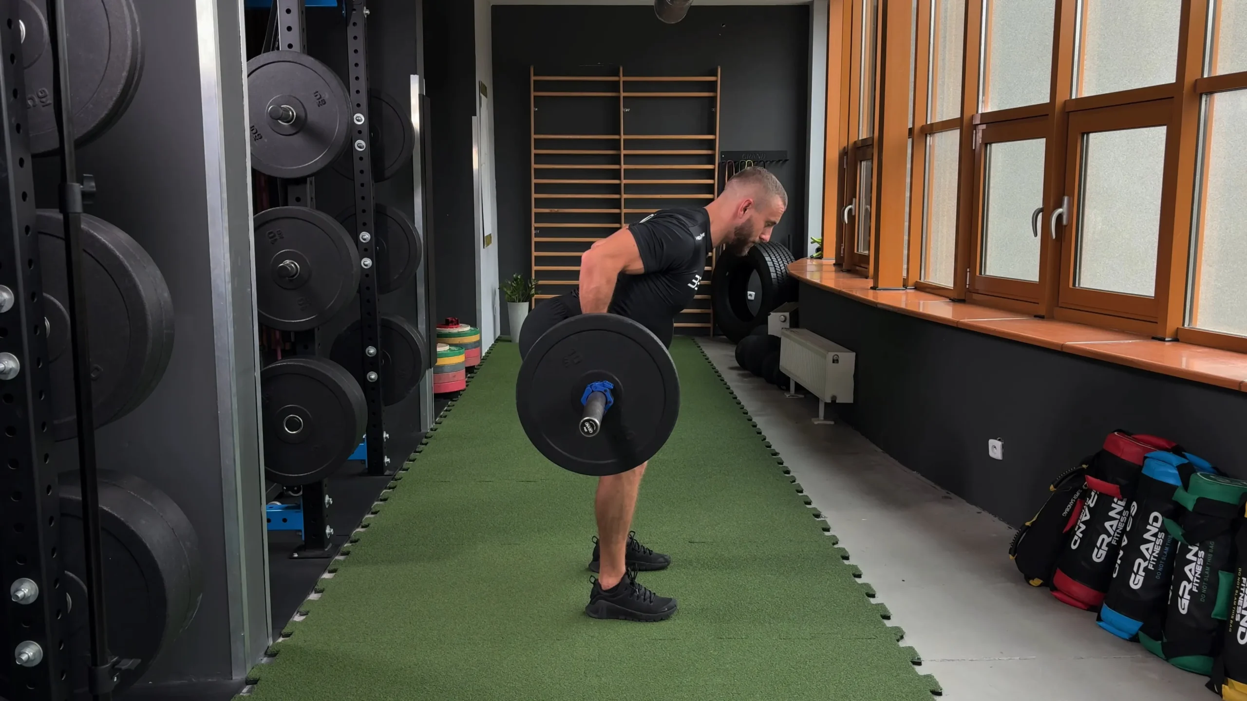 Wiosłowanie sztangą podchwytem w opadzie tułowia z pauzą