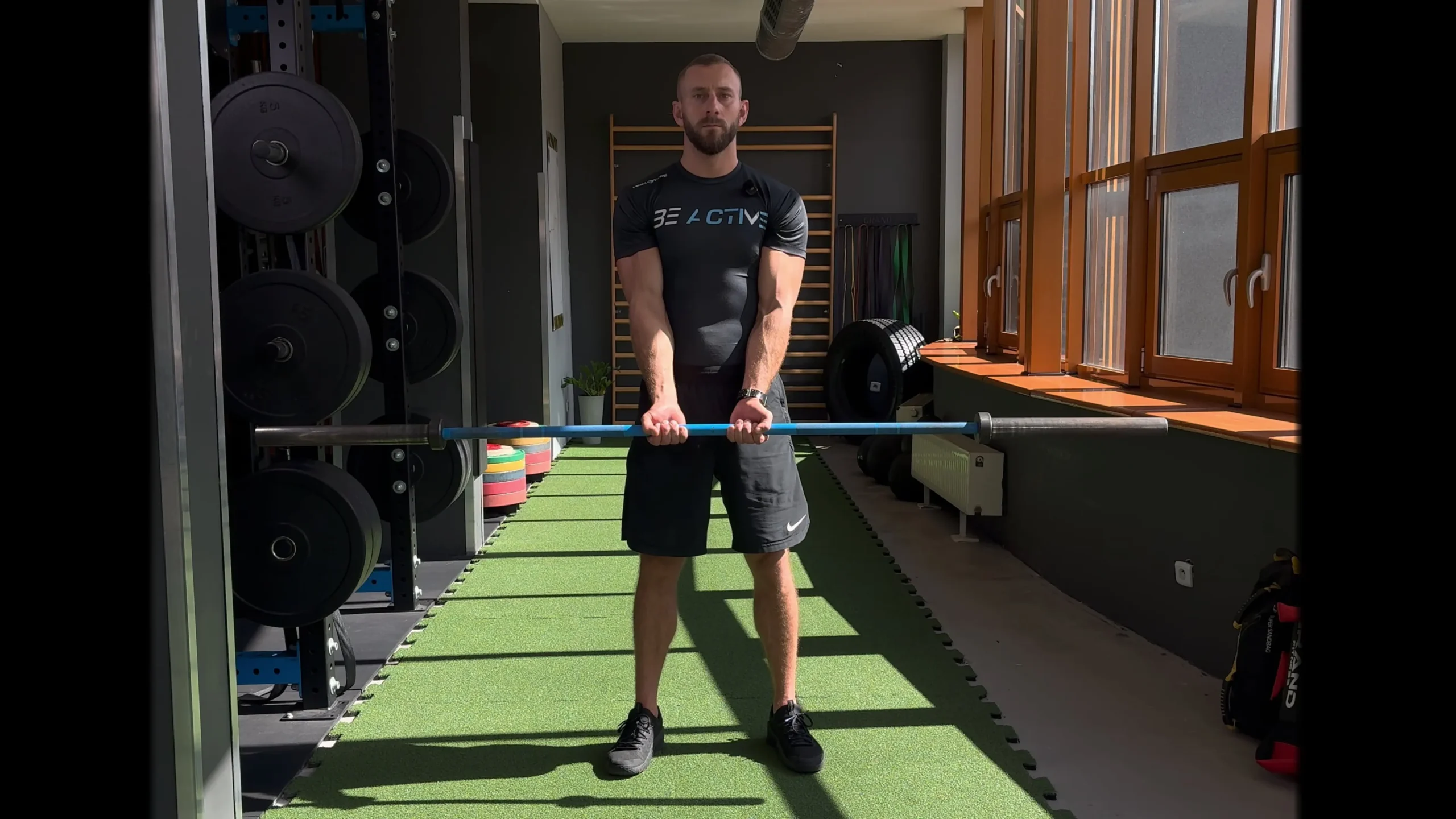 Uginanie ramion ze sztangą podchwytem wąsko